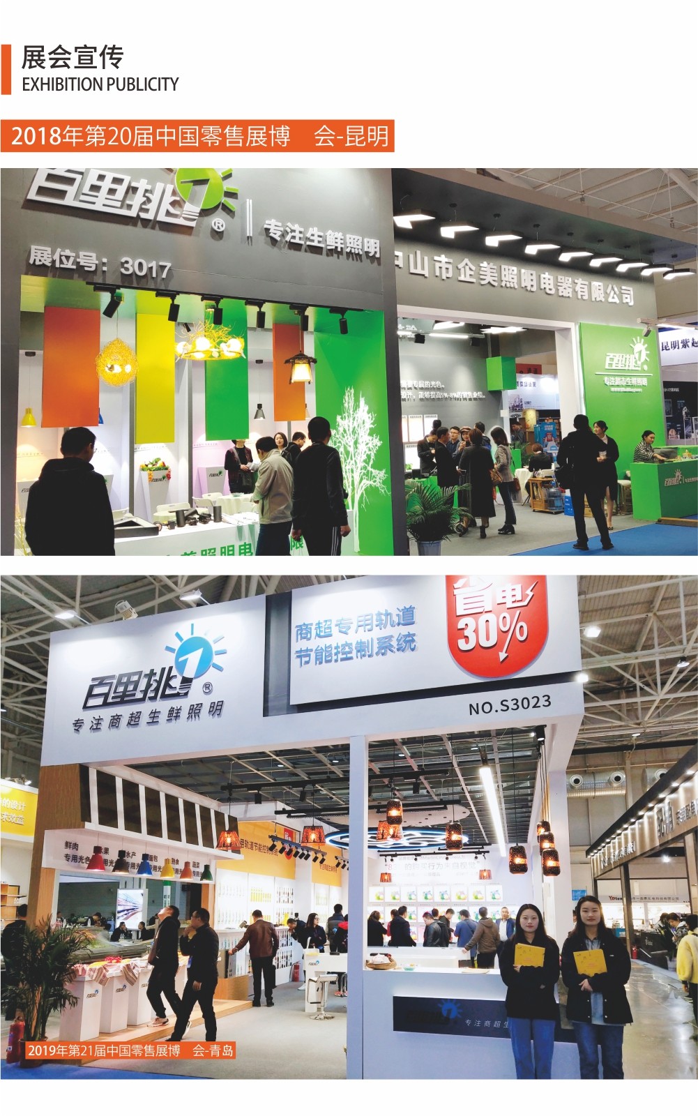 中山市企美照明電器有限公司,2016年創(chuàng)立于聞名國內(nèi)外的“中國燈飾之都”,是一家集產(chǎn)品設(shè)計(jì)、研發(fā)、生產(chǎn)、銷售、服務(wù)團(tuán)隊(duì)為一體的專業(yè)化商業(yè)照明公司。旗下品牌“百里挑一”針對商超細(xì)分市場的發(fā)展特點(diǎn)和需求、專攻高端超市生鮮照明市場,已為全球8613家超市、購物中心、連鎖生鮮店鋪、星級農(nóng)貿(mào)市場等零售企業(yè),提供了專用的燈光、燈具照明應(yīng)用解決方案。